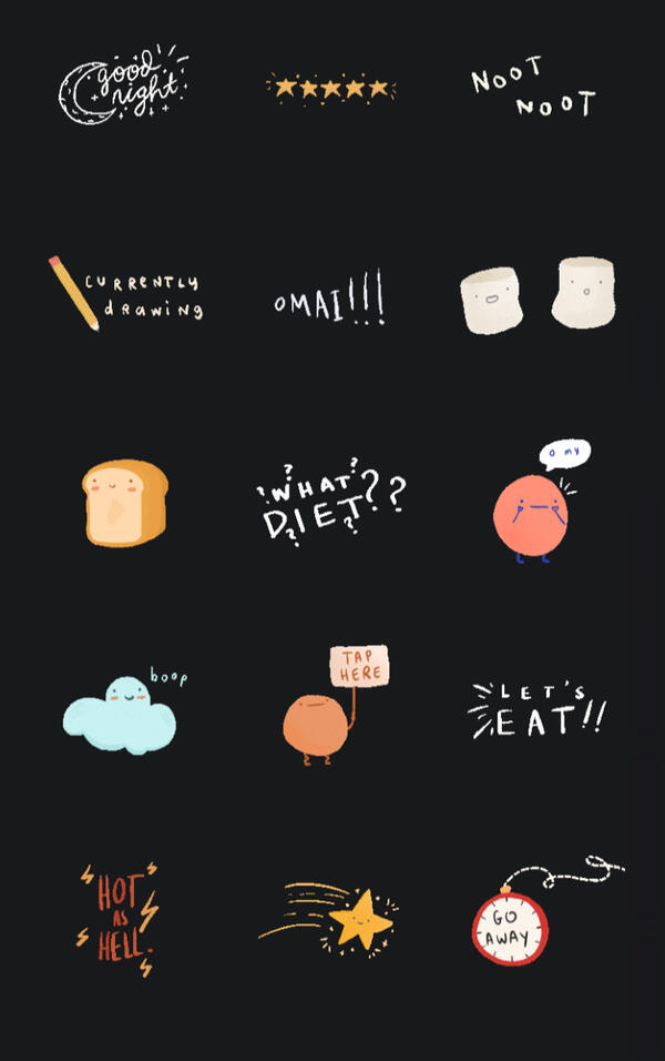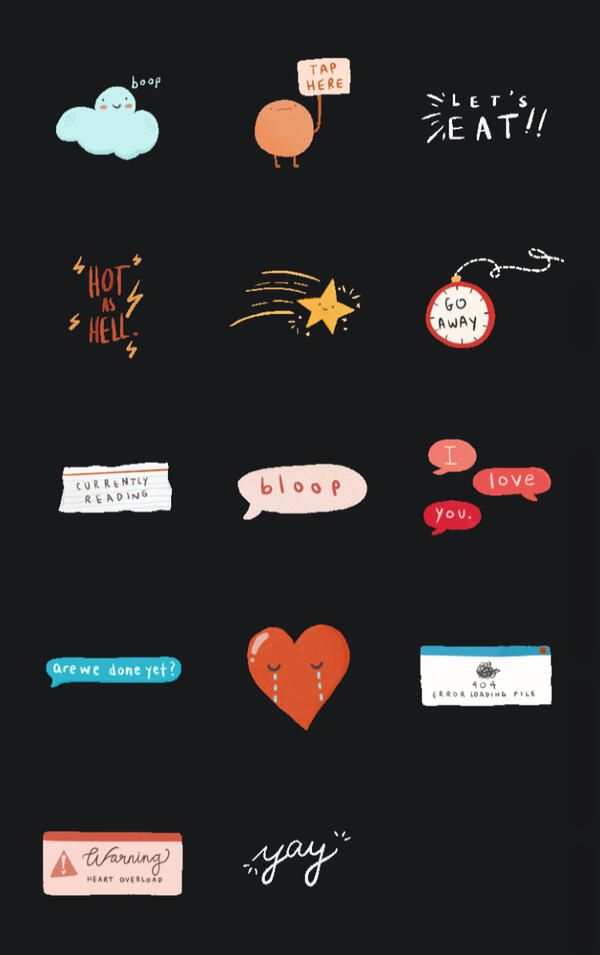 A collection of GIFs I designed for personal and public use, under my art brand '@buttersquibs'.